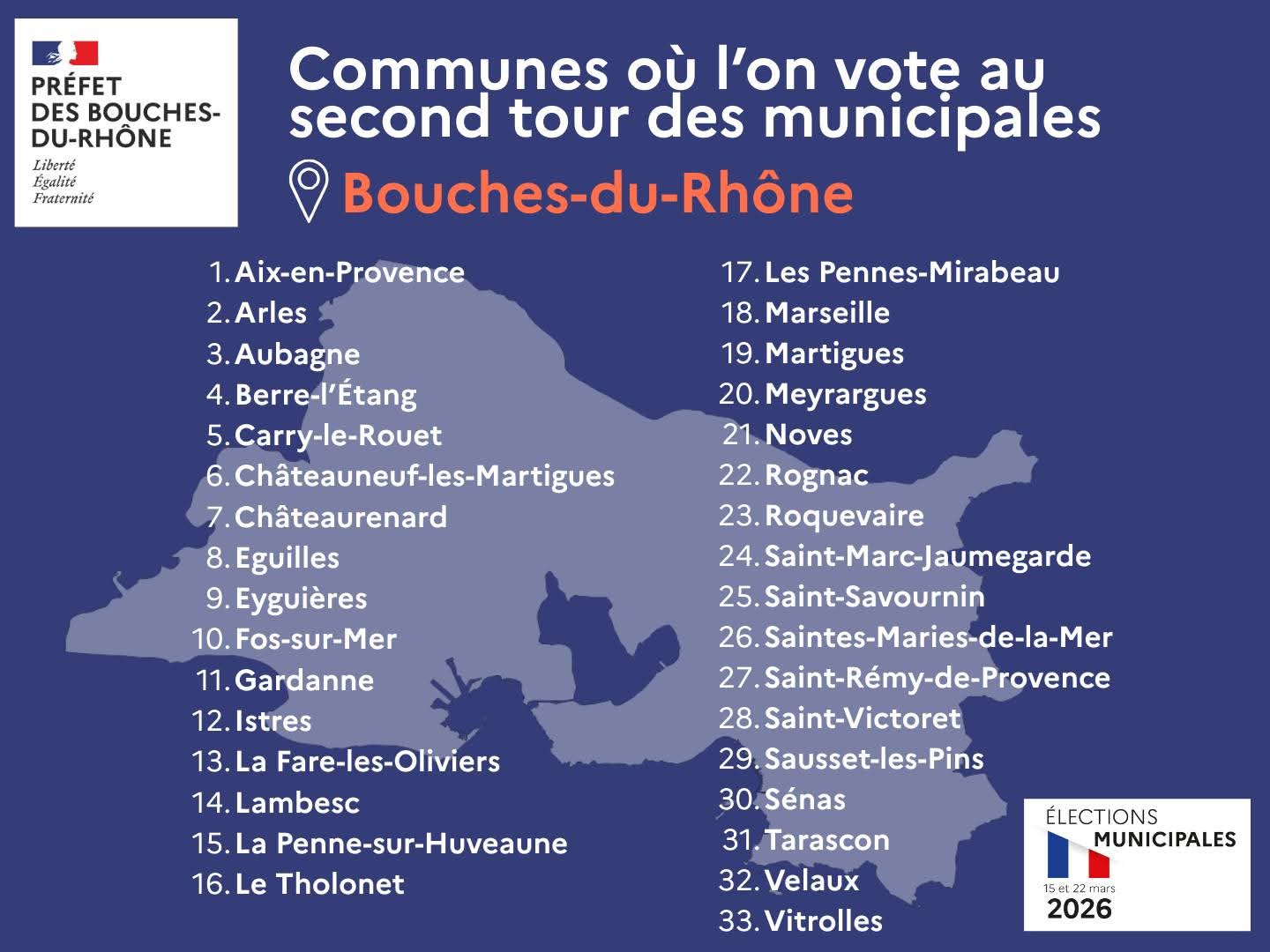 12h : Si de nombreux maires des Bouches-du-Rhône ont été élus dès le 1er tour dimanche dernier. Les électeurs de 33 communes du département sont appelés à voter ce dimanche 22 mars pour le second tour !